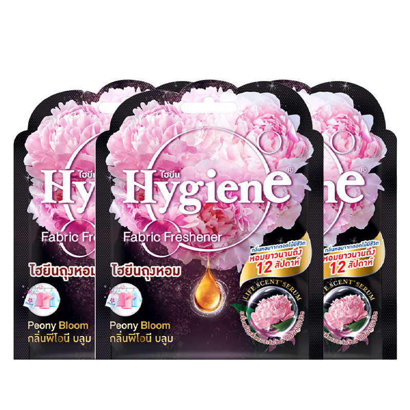 ไฮยีน ผลิตภัณฑ์ถุงหอม กลิ่นพีโอนี บลูม สีดำ 8 ก. x 3