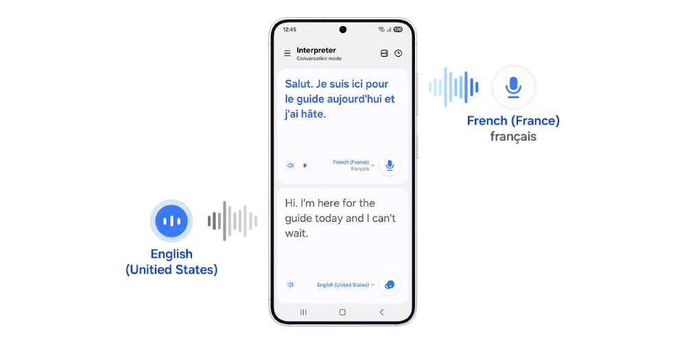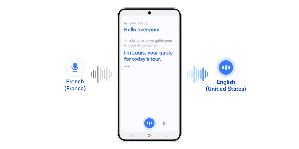 ให้คุณฟังคำแปลได้ทันที โดยไม่ต้องมองหน้าจอสมาร์ทโฟน ใส่หูฟังไว้เสมอและสนทนาได้อย่างเพลิดเพลิน ขณะที่ Galaxy AI แปลภาษาแบบเรียลไทม์