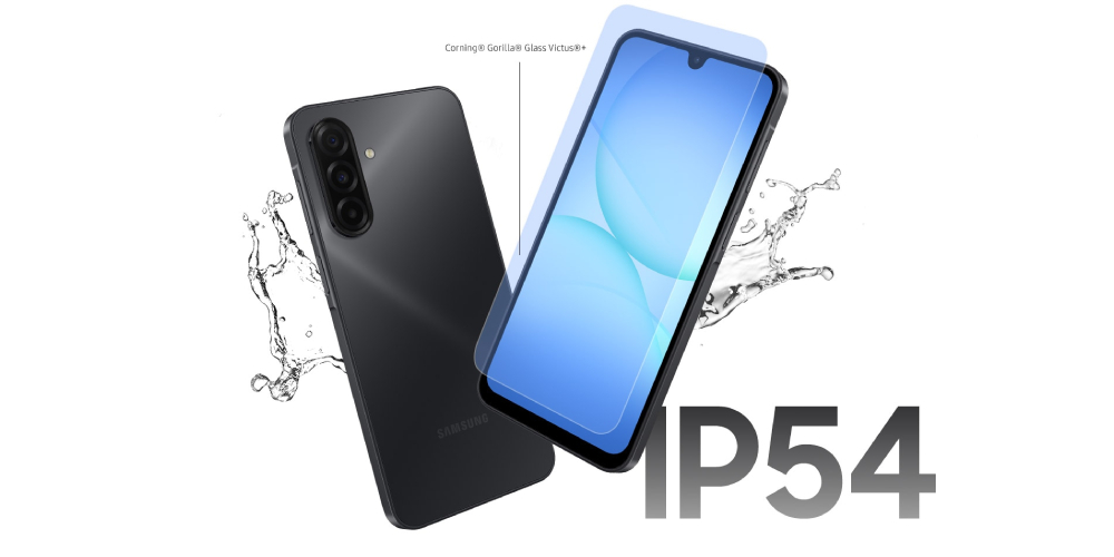 เครื่องอึด ทนทาน ด้วยมาตรฐาน IP54 (กันน้ำกระเซ็น) และกระจกกันรอย Corning® Gorilla® Glass Victus®+ ทำให้คุณใช้ชีวิตได้อย่างเต็มที่ ไม่ต้องกังวลเรื่องรอยขีดข่วนหรือน้ำหกใส่