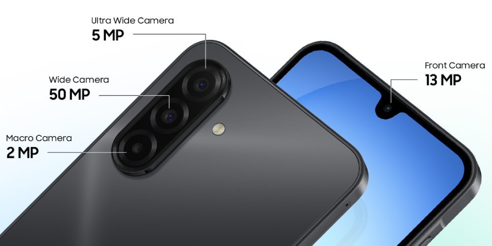 Galaxy A17 มีกล้อง 3 ตัวสุดปัง 50MP (กล้องหลัก), 5MP (เลนส์กว้างพิเศษ), และ 2MP (เลนส์มาโคร) ช่วยให้คุณถ่ายภาพได้แม่นยำ คมชัด และสีสันสดใส ไม่ว่าจะเก็บภาพทิวทัศน์กว้าง ๆ หรือรายละเอียดระยะใกล้ ก็ทำได้อย่างไร้ที่ติ