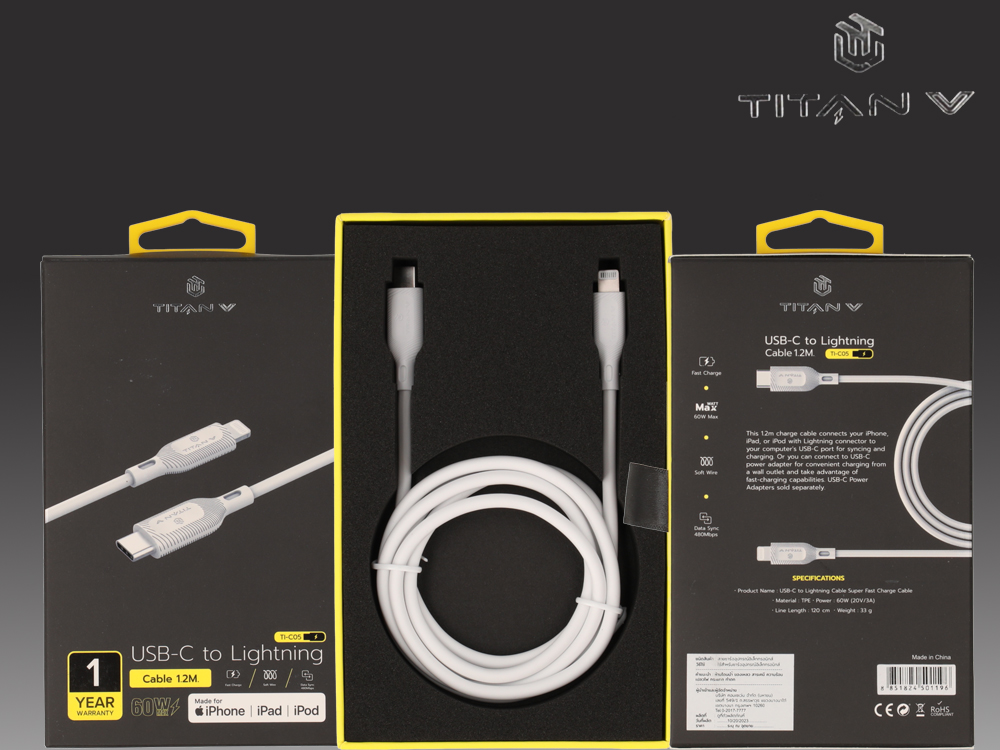 เป็นสายชาร์จสำหรับผลิตภัณ์ของ Apple โดยเฉพาะ ได้รับการควบคุมมาตรฐานของสินค้า จากบริษัทแม่ทำให้สินค้า MFI ทุกชิ้นเชื่อมต่อกับอุปกรณ์ Apple ของคุณได้อย่างดี มีความสามารถในการชาร์จที่รวดเร็ว ขั้วต่อแข็งแรงวัสดุระดับพรีเมียม ปลอดภัยได้มาตรฐาน สายชาร์จ TITANV เป็นตัวเลือกที่คุณไม่ควรพลาด