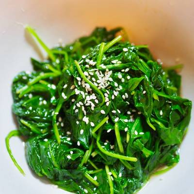 ยำผักโขมน้ำมันงา รสชาติลงตัวหอมกลิ่นน้ำมันงา เหมาะกับไปเป็นเครื่องเคียงสำหรับเมนูของเกาหลี และ ญี่ปุ่นได้ หอมกลิ่นน้ำมันงา
