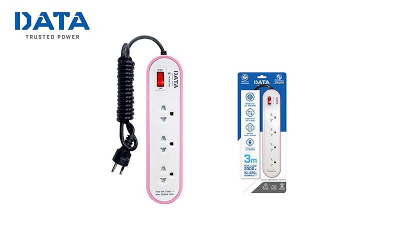 DATA Plug 3 Way 1 Switch 3M. AP3146 Pink