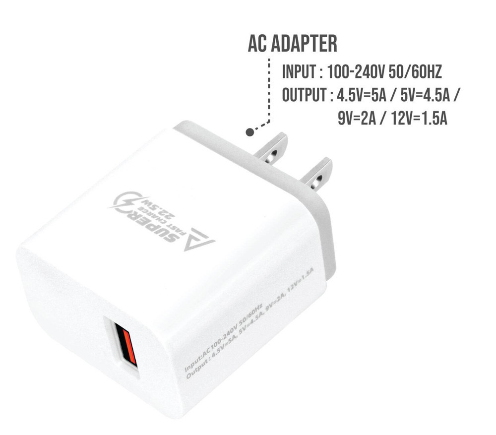 ASAKI Wall USB Charger 1 USB-A (22.5W) White + USB-A to USB-C Cable 1M. Black (A-2210)