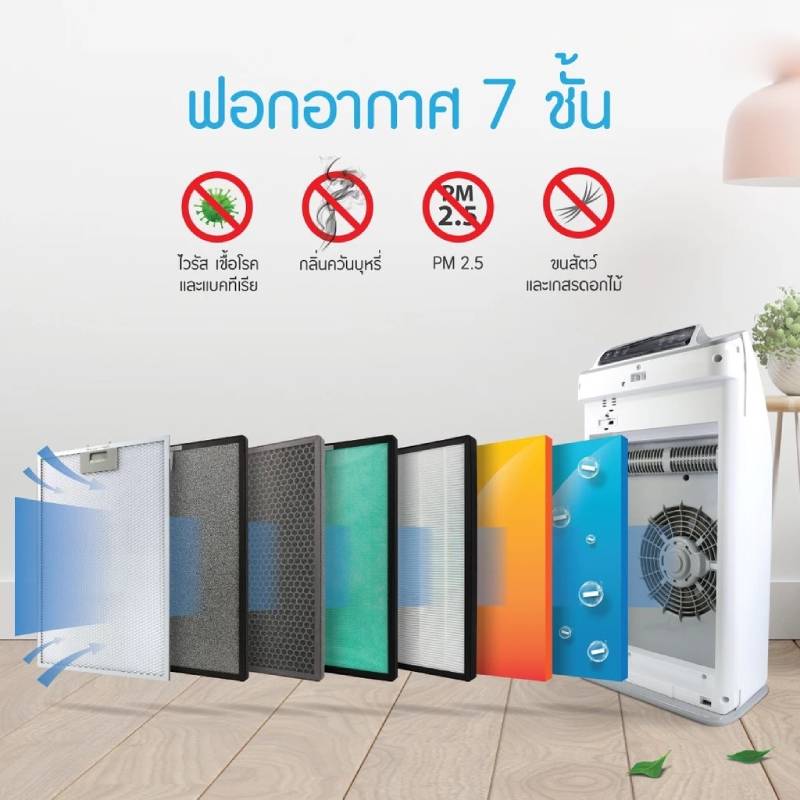 เครื่องฟอกอากาศที่สามารถช่วยกำจัดฝุ่น PM2.5 แบคทีเรีย เชื้อรา และสารก่อภูมิแพ้ต่างๆ ในอากาศได้ มีระบบกรองอากาศ 7 ขั้นตอน และเทคโนโลยี UVC ในการฆ่าเชื้อโรค