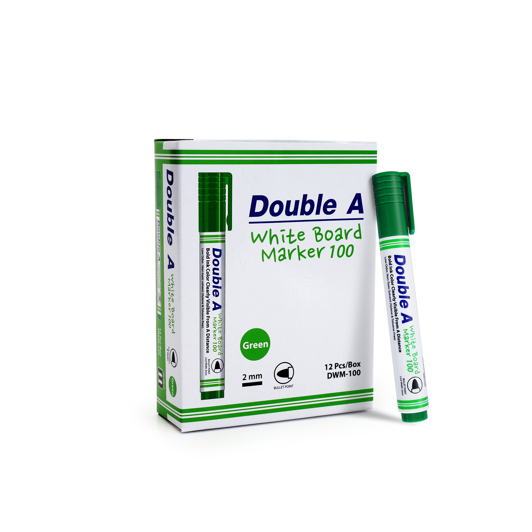 ปากกาไวท์บอร์ด ดั๊บเบิ้ล เอ สีเขียว กล่อง 12 ด้าม