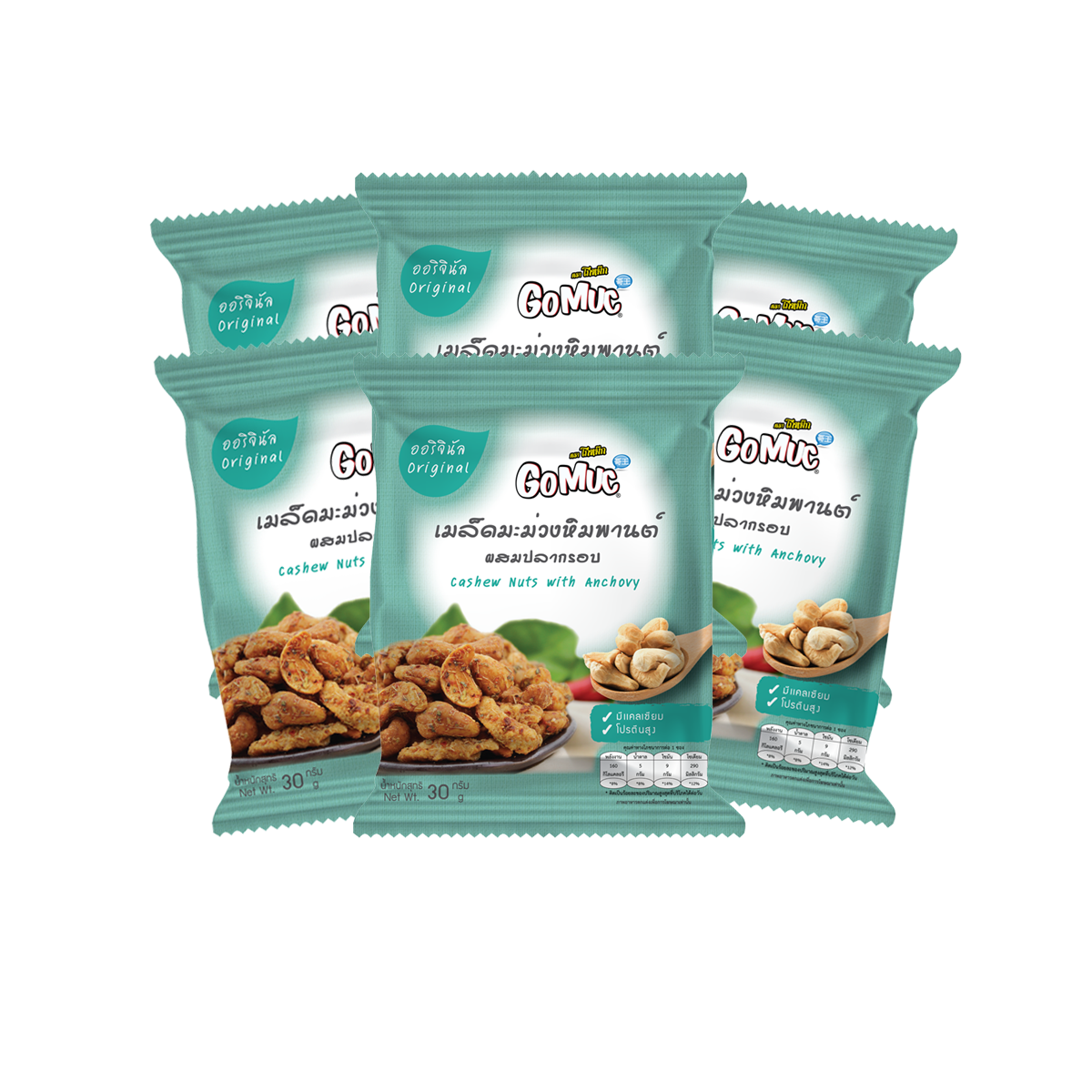 โกหมึก เม็ดมะม่วงหิมพานต์ผสมปลากรอบ 30 กรัม x 6 ซอง