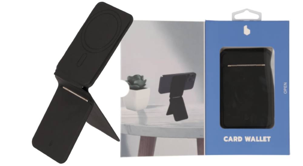 นอกจากนี้ยังสามารถใส่บัตรได้ถึง 2-3 ใบ เหมาะสำหรับคนที่ต้องการลดการพกกระเป๋าสตางค์ ใช้งานง่ายในชีวิตประจำวัน ผิวสัมผัสคุณภาพสูง สีดำเรียบหรู ดูดีทุกมุมมอง เป็นไอเท็มที่เหมาะกับทั้งผู้ชายและผู้หญิงที่ต้องการขาตั้งที่ทั้งบาง เบา และใช้งานได้จริง