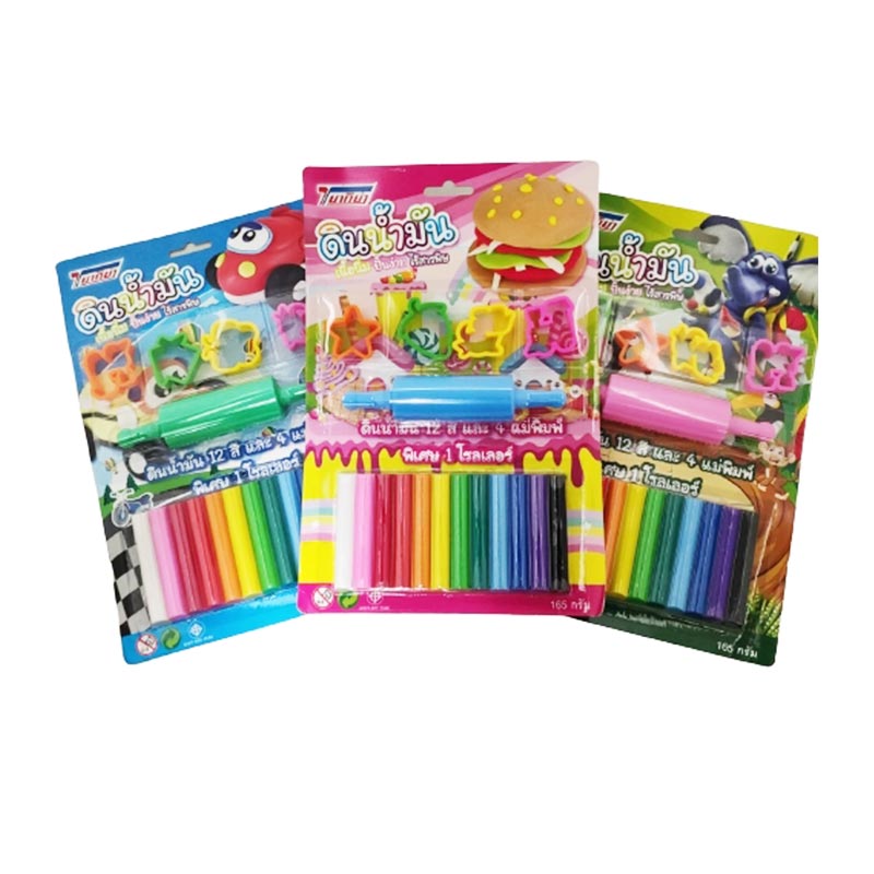ดินน้ำมัน 12 สี พร้อมแม่พิมพ์และโรลเลอร์ x 3 ชุด