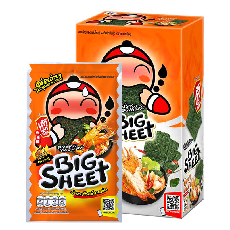 เถ้าแก่น้อย บิ๊กชีท สาหร่ายทอด ต้มยำมันกุ้ง 3.2 ก. 12 ชิ้น