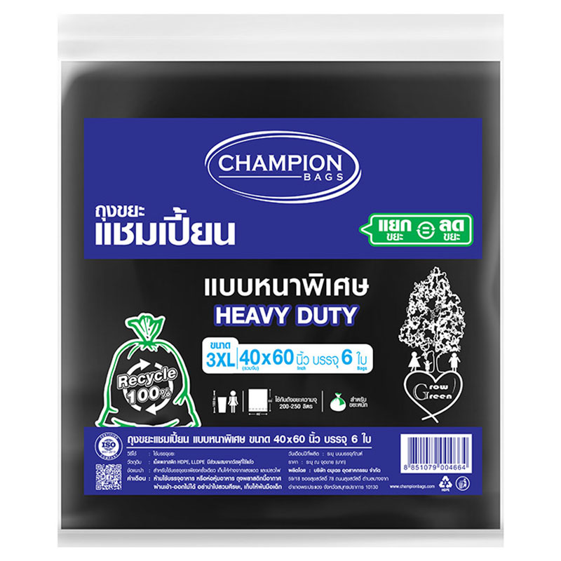 แชมเปี้ยน ถุงขยะ แบบหนาพิเศษ ขนาด 3XL 40x60 นิ้ว 6 ใบ