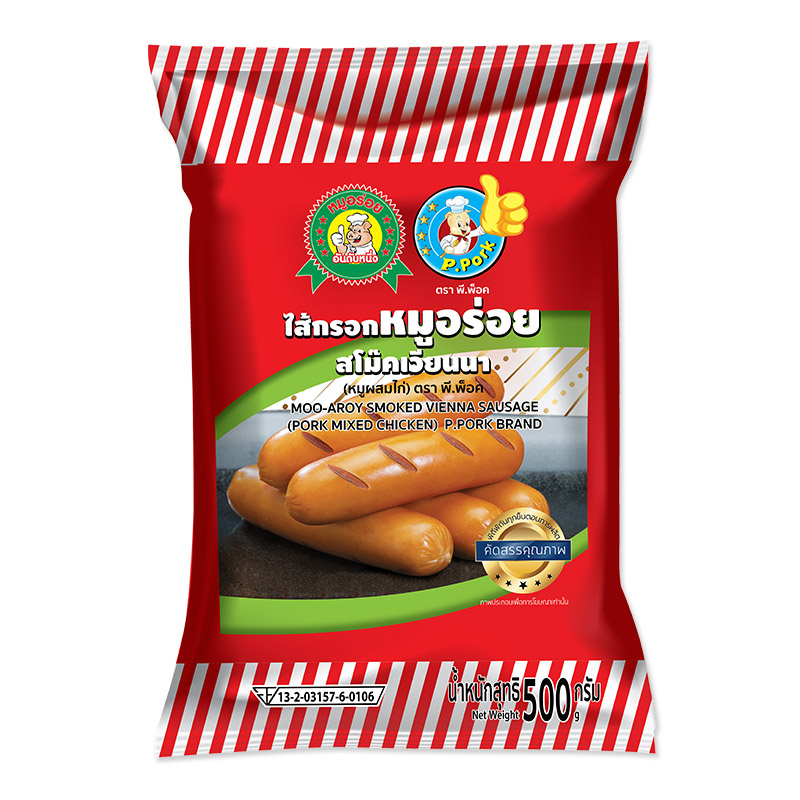 - ชื่อสินค้า: พี.พ็อค หมูอร่อย ไส้กรอกหมู 500 ก. - แบรนด์: พี.พ็อค - ปริมาณบรรจุ: 1 หน่วย
