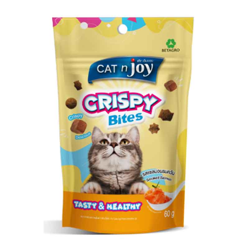 แค็ทเอ็นจอย คริสปี้ไบทส์ ขนมแมว รสแซลมอนรมควัน 60 กรัม