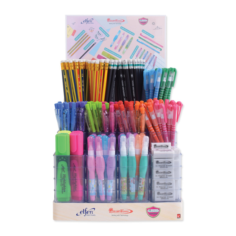 - สินค้าชุดเซ็ตเครื่องเขียน มีตู้ให้พร้อมนำไปวางขายได้ทันทีเป็นสินค้าที่ขายดีในแต่ละหมวด - ในเซ็ตจะประกอบด้วย ปากกาน้ำเงิน, ปากกาแดง, ดินสอดำขนาด HB, ดินสอดำ 2B, ยางลบ, ปากกาเน้นข้อความ, ปากกาลบคำผิด