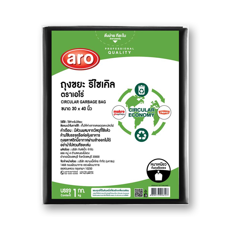 เอโร่ ถุงขยะดำหนารีไซเคิล 30x40 นิ้ว 1 กก.