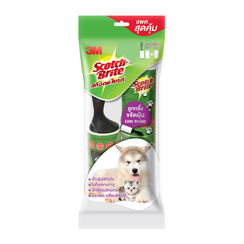 สก๊อตช์-ไบรต์ ลูกกลิ้งขจัดฝุ่น รุ่น 30แผ่น ฟรี รีฟิล2ม้วน ใช้กลิ้งบนเสื้อผ้า หรือพื้นผิว