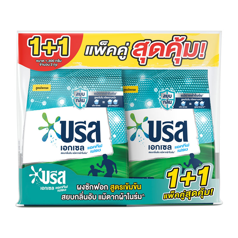 บรีส เอกเซล แอคทีฟเฟรช ผงซักฟอกสูตรเข้มข้น สีฟ้า 1.3 กก. x 1+1