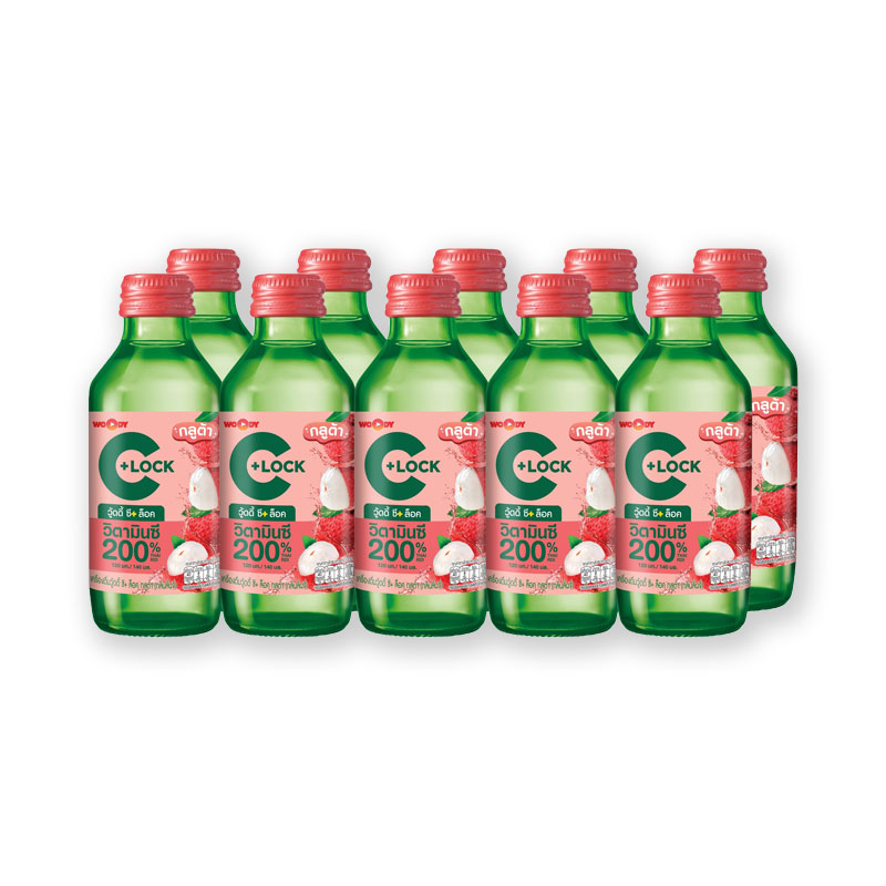 วู้ดดี้ ซี+ ล็อค น้ำวิตามินซี กลูต้าลิ้นจี่ 140 มล. x 10