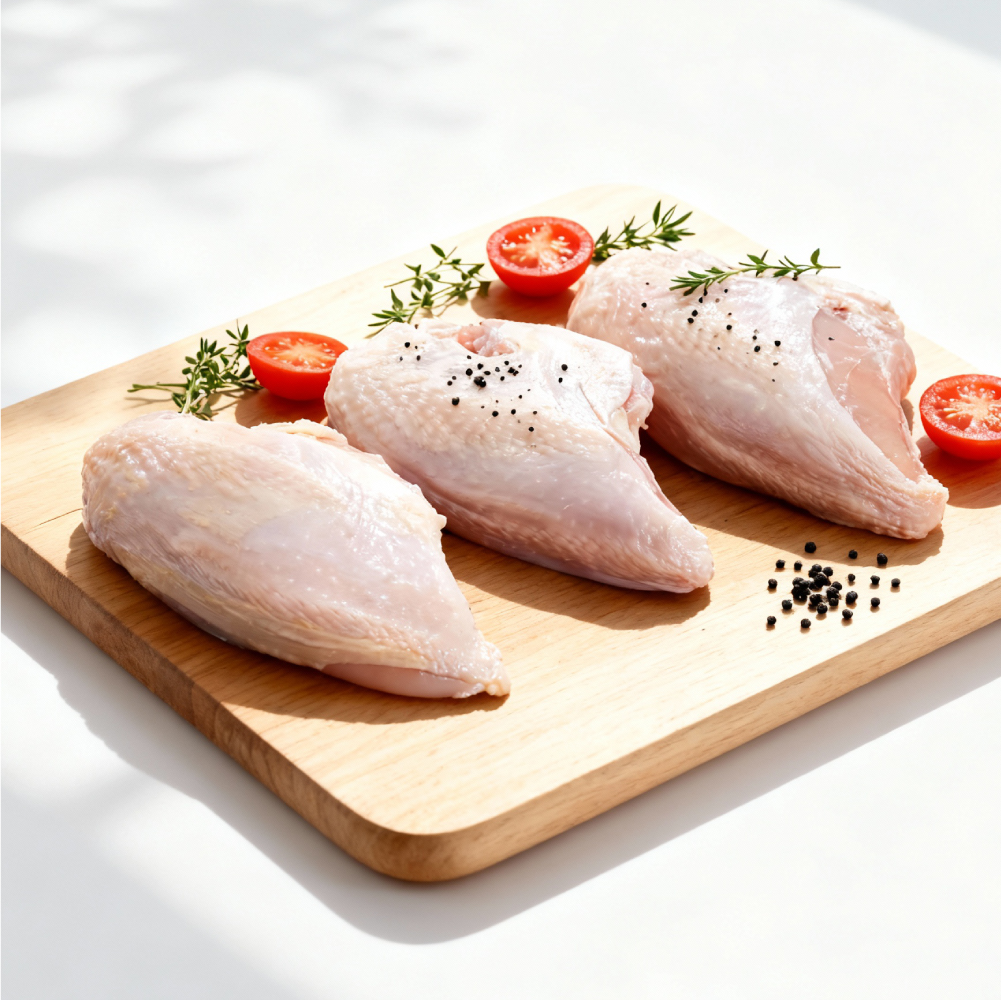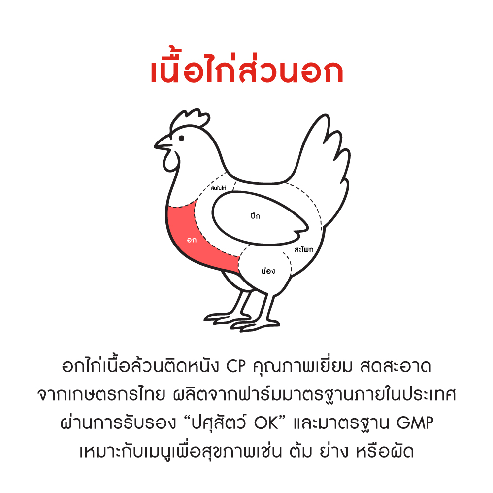 CP อกไก่เนื้อล้วนติดหนังแพ็ค 1KG.