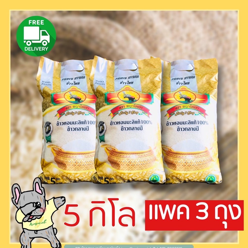 ข้าวหอมมะลิพญาไอยราถุง5กก.ชุด3ถุง ส่งฟรี