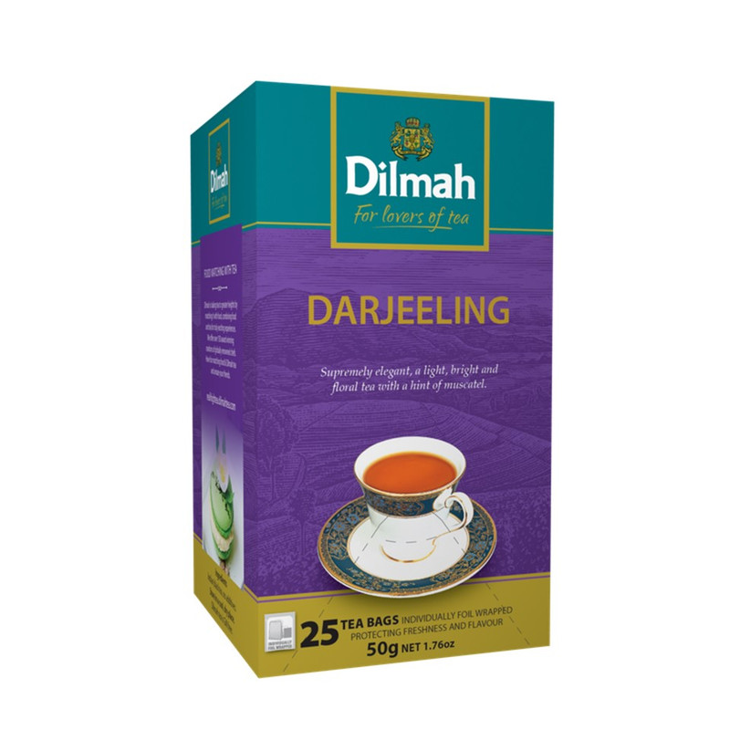 ดิลมา Darjeeling Tea สัมผัสได้ถึงสุนทรียรสนุ่มละมุนของชาดำชั้นเลิศจากประเทศศรีลังกา ที่ผสานกันอย่าง ลงตัวกับรสละมุนของผลไม้จำพวกมะกรูดจนได้ชารสเบาที่ลงตัวด้วยรสสัมผัสจาก ธรรมชาติอันเป็นเอกลักษณ์จนคุณสัมผัสได้ถึงความสดชื่นในทุกครั้งที่ดื่ม ชาศรีลังกาแท้ 100% จากใบชาคุณภาพคัดสรรชาดำชั้นเลิศของโลก น้ำชาสีทองอ่อน รสเข้มระดับอ่อนนุ่ม เหมาะกับการดื่มในทุกช่วงเวลา คืนความสดชื่นทุกครั้งที่ดื่ม คงกลิ่นรสบางๆ ของผลไม้จำพวกมะกรูดที่ให้ความรู้สึกสดชื่น บรรจุซองกระดาษ (ถุงชา) คงกลิ่นหอมสดชื่น ชนิดใบชาอบแห้ง สูตร Darjeeling