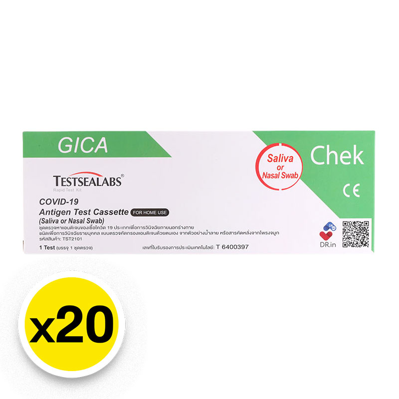 - ชื่อสินค้า: เทสท์ซีแลปส์ ชุดตรวจโควิดทางจมูก x 20 - แบรนด์: เทสท์ซีแลปส์ - ปริมาณบรรจุ: 20 หน่วย