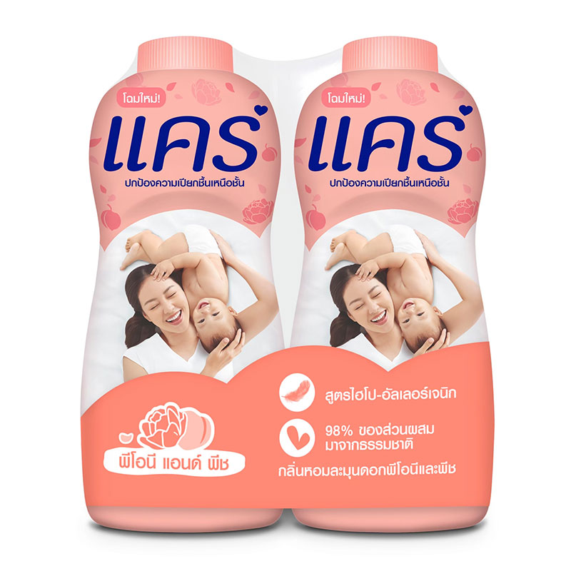 - ชื่อสินค้า: แคร์ แป้งเด็ก พีโอนีแอนด์พีช 350 ก. x 2 - แบรนด์: แคร์ - ปริมาณบรรจุ: 2 หน่วย