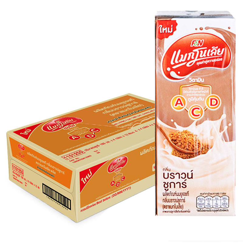 แมกโนเลีย พลัส นมยูเอชที กลิ่นบราวน์ชูการ์ 180 มล. x 48