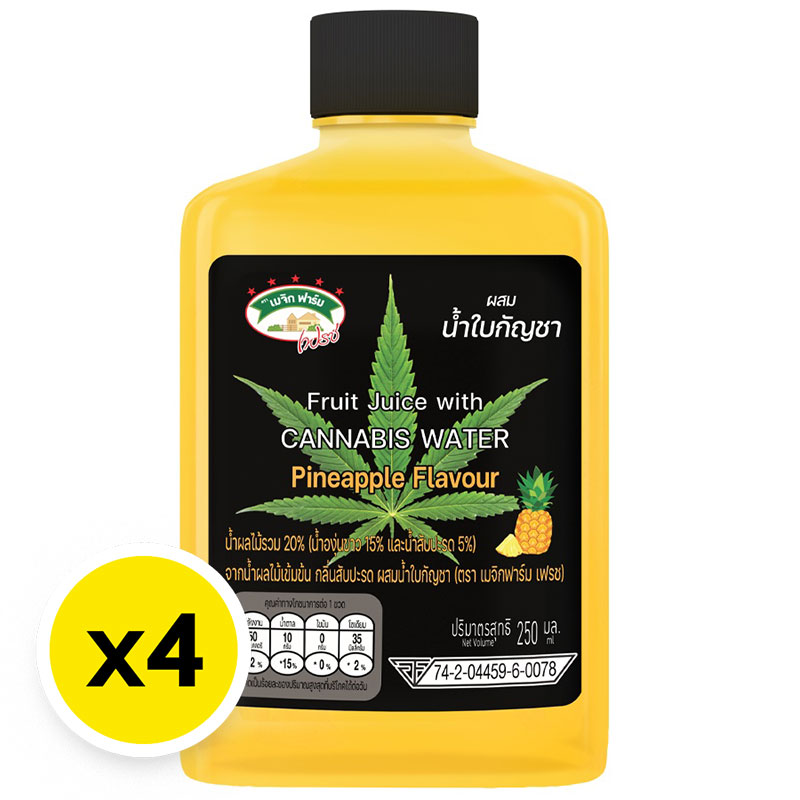 เมจิก ฟาร์ม เฟรสน้ำผลไม้ กลิ่นสับปะรด ผสมน้ำใบกัญชา 250 มล. x 4