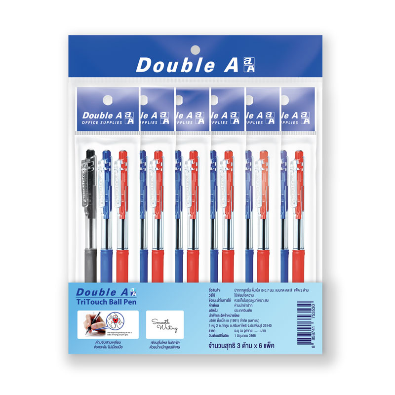 ดั๊บเบิ้ล เอ ปากกากดลูกลื่น 0.7 มม. คละสี แพ็ค 3 ชิ้น x 6