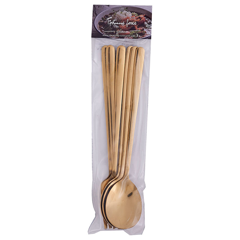 - ชื่อสินค้า: ช้อนส้อมสแตนเลส 19 ซม. สีทอง - แบรนด์: แม็คโคร - ปริมาณบรรจุ: 1 หน่วย