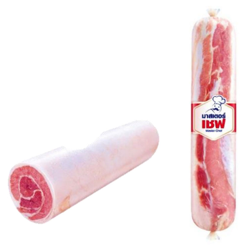มาสเตอร์เชฟ สามชั้นลอกหนังหมูม้วนกลมแช่แข็ง 1 ลัง (3 กก. x 4)