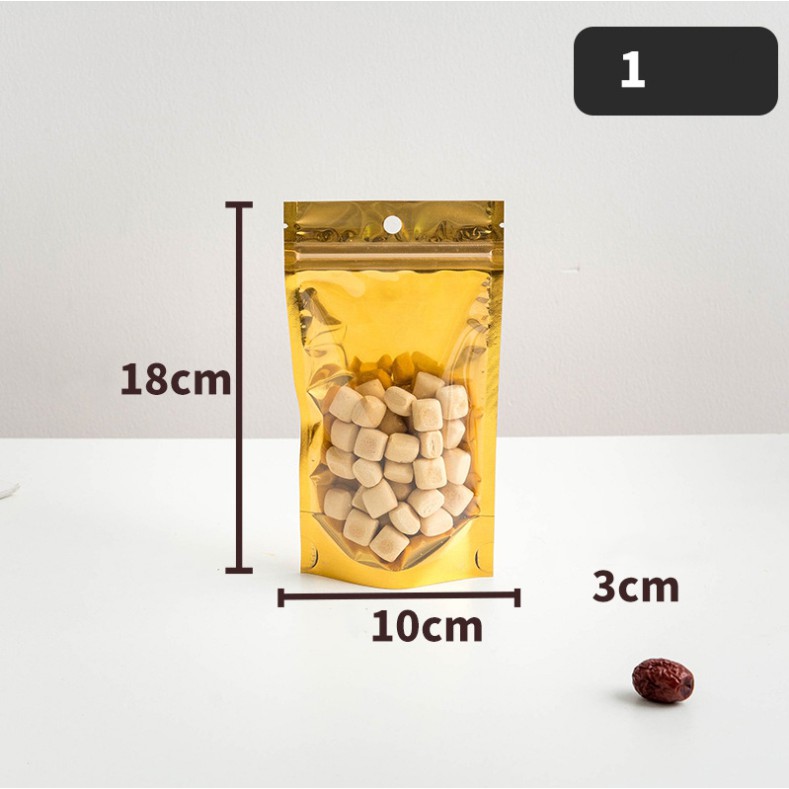 Matapat ถุงฟอยด์ทอง (ทอง 10x18 +3 cm.) ถุงซิปล็อคตั้งได้ ด้านหน้าใสหลังทอง ถุงฟอยด์สีทอง ถุงขนม ซองขนม (บรรจุ25ใบ)