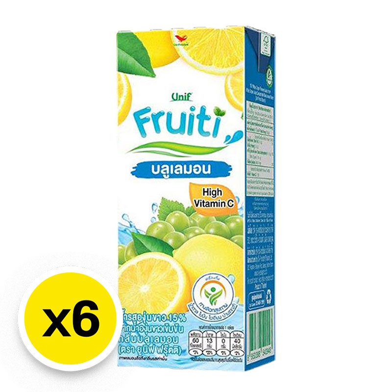 ยูนิฟ ฟรุ๊ตติ น้ำรสองุ่นขาว 15% จากน้ำองุ่นขาวเข้มข้น กลิ่นบลูเลมอน 230 มล. x 6
