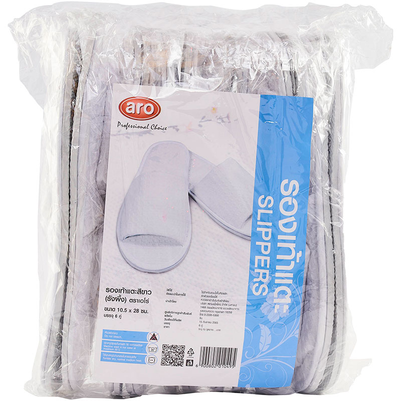 - ชื่อสินค้า: เอโร่ รองเท้าสลิปเปอร์ ขาว x 6 - แบรนด์: เอโร่ - ปริมาณบรรจุ: 6 คู่