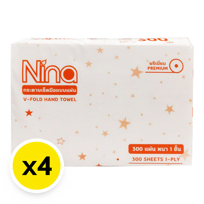 - ชื่อสินค้า: นีน่า กระดาษเช็ดมือ 1 ชั้น 300 แผ่น x 4 - แบรนด์: นีน่า - ปริมาณบรรจุ: 4 หน่วย