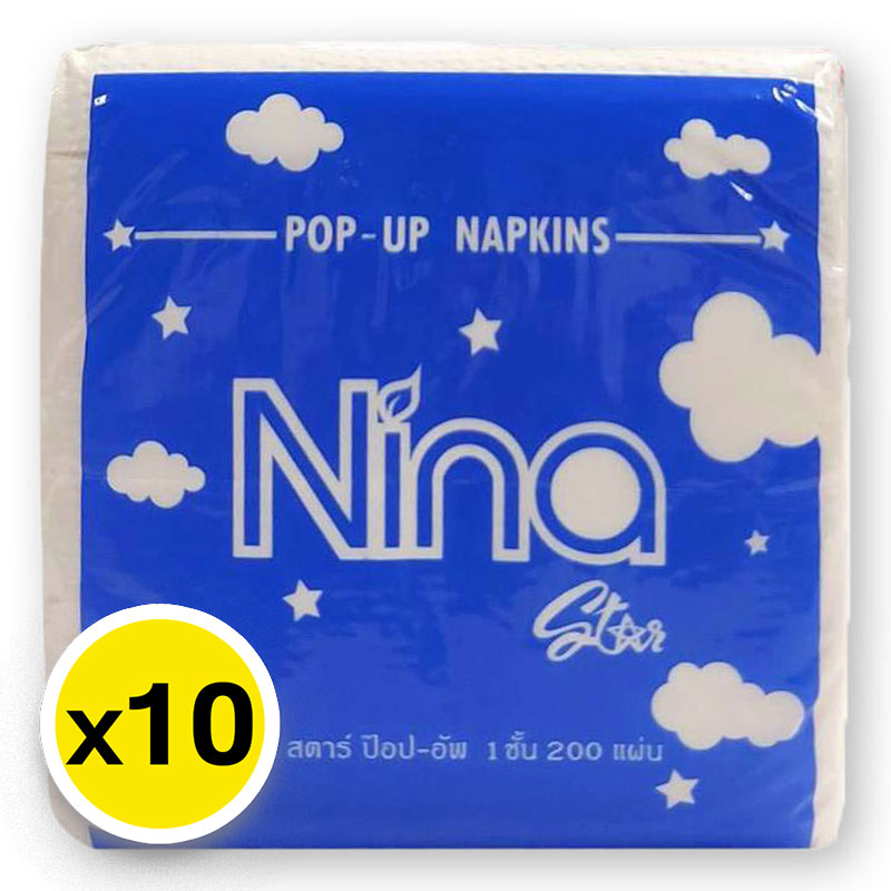 - ชื่อสินค้า: นีน่า กระดาษเช็ดปาก 200 แผ่น x 10 - แบรนด์: นีน่า - ปริมาณบรรจุ: 10 หน่วย