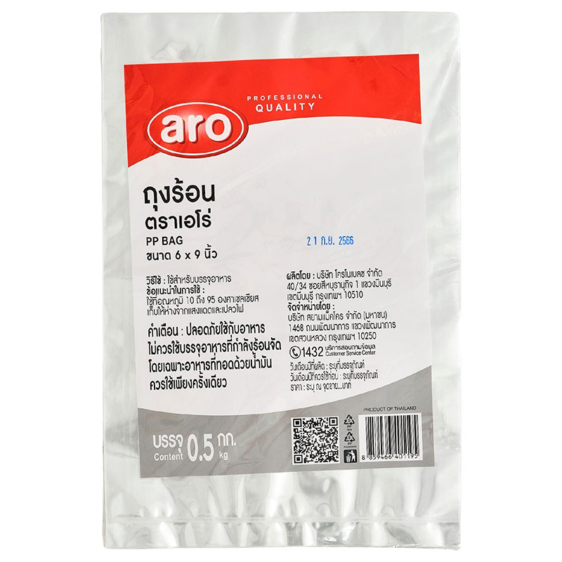 - ชื่อสินค้า: เอโร่ ถุงร้อน 6x9 นิ้ว 500 ก. - แบรนด์: เอโร่ - ปริมาณบรรจุ: 1 หน่วย ข้อแนะนำในการใช้: ใช้ที่อุณหภูมิ 10 ถึง 95 องศาเซลเซียส ข้อควรระวัง: ปลอดภัยใช้กับอาหาร ไม่ควรใช้บรรจุอาหารที่กำลังร้อนจัด โดยเฉพาะอาหารที่ทอดด้วยน้ำมัน ควรใช้เพียงครั้งเดียว และ ควรเก็บให้ห่างจากแสงแดดและเปลวไฟ