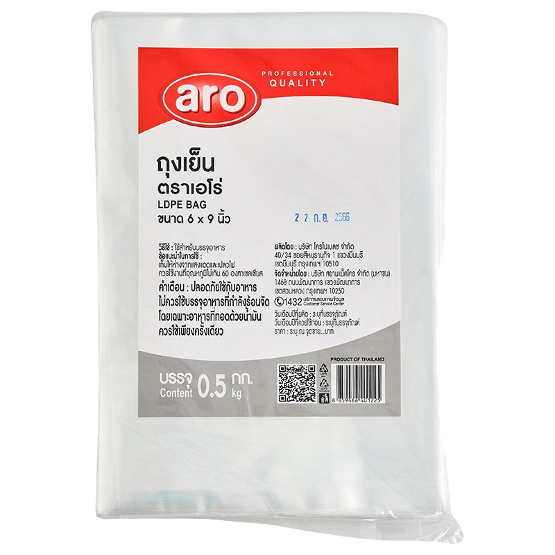 - ชื่อสินค้า: เอโร่ ถุงเย็น 6x9 นิ้ว 500 ก. - แบรนด์: เอโร่ - ปริมาณบรรจุ: 1 หน่วย