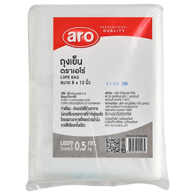 - ชื่อสินค้า: เอโร่ ถุงเย็น 8x12 นิ้ว 500 ก. - แบรนด์: เอโร่ - ปริมาณบรรจุ: 1 หน่วย