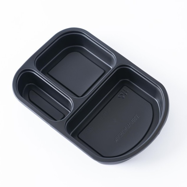 Matapat กล่องข้าว3หลุม ขนาด 650มล. (ดำ) รุ่นฝาล็อคปิดสนิท กล่องเดลิเวรี่ กล่องอาหารพลาสติก กล่องข้าวเวฟได้ (25ชุดพร้อมฝา) L-32
