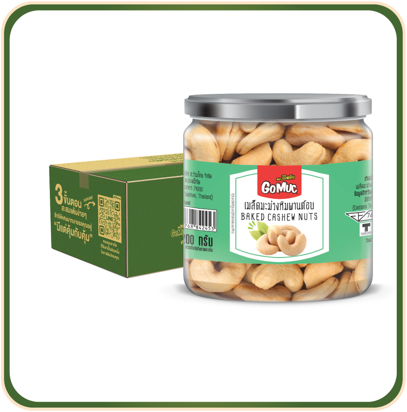 เม็ดมะม่วงหิมพานต์อบ 200 กรัม [GoMuc | โกหมึก] BAKED CASHEW NUTS ถั่วและธัญพืช ประโยชน์ต่อสุขภาพ ดีต่อระบบไหลเวียนเลือดและหัวใจ ลดความดันโลหิต ป้องกันการก่อตัวของโรคนิ่ว เพิ่มความหนาแน่นของมวลกระดูก