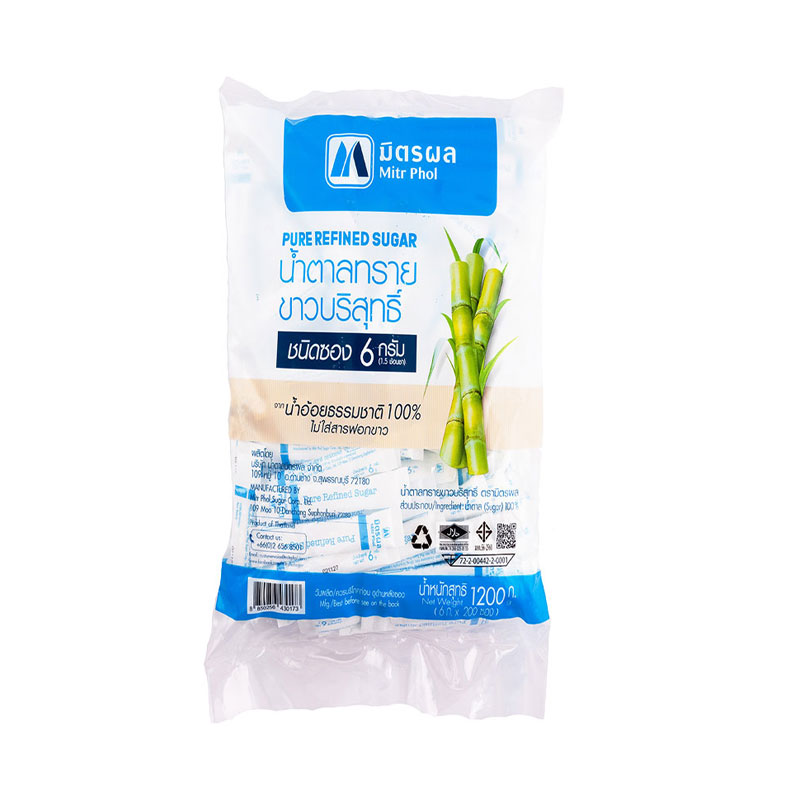 - ชื่อสินค้า: มิตรผล น้ำตาลทรายซอง 6 ก. x 200 - แบรนด์: มิตรผล - ปริมาณบรรจุ: 200 หน่วย ข้อมูลการเก็บรักษา: ควรเก็บในที่แห้งและเย็น ใส่ในภาชนะปิดสนิท ถ้าแกะห่อแล้ว