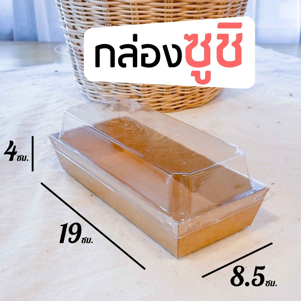 Matapat กล่องซูชิ กล่องคราฟท์น้ำตาล ทรงผืนผ้าฝาใส () กล่องบราวนี่ กล่องคุ้กกี้ ปากกว้าง 8.5 x ยาว 19 x สูง 4 ซม. (50ชุด)