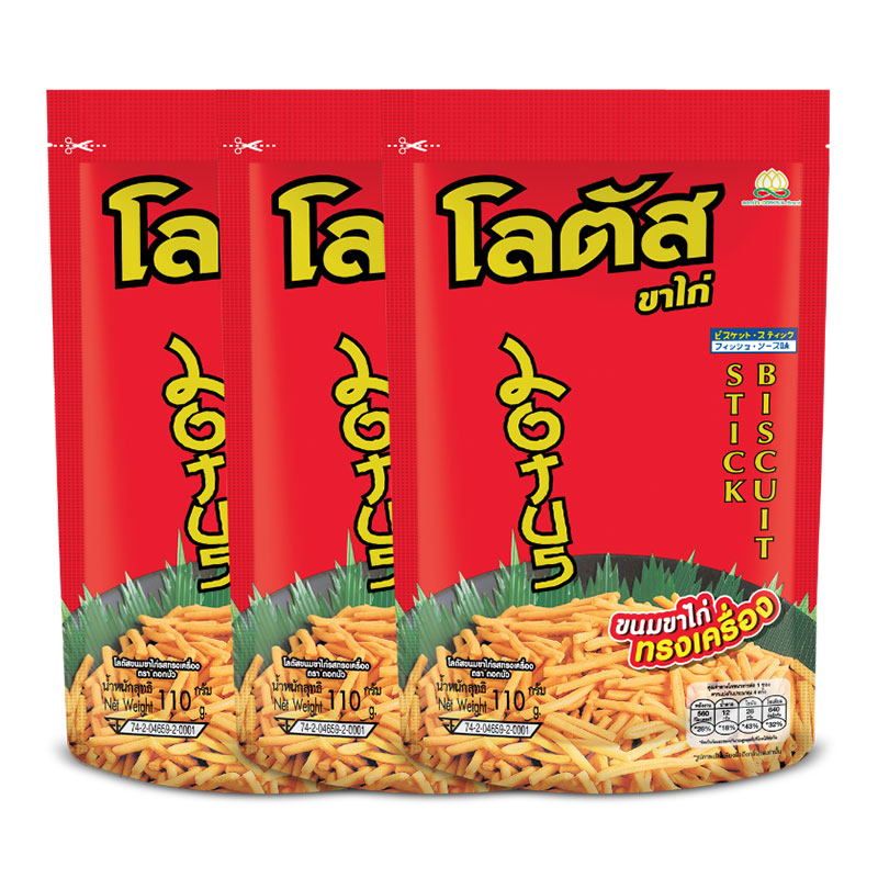 - ชื่อสินค้า: โลตัส ขนมขาไก่ทรงเครื่อง 110 ก. x 3