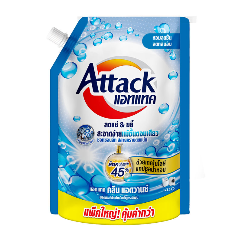 แอทแทค น้ำยาซักผ้า สูตรเข้มข้น คลีนแอดวานซ์ สีฟ้า 1.5 ล.