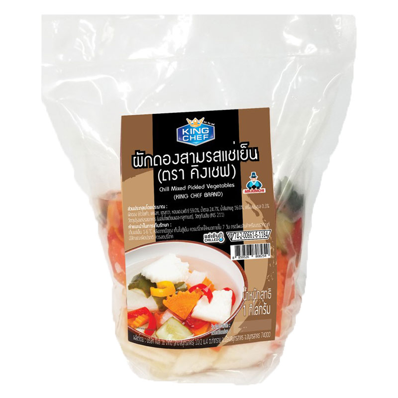 - ชื่อสินค้า: คิงเชฟ ผักดองสามรส 1 กก. - แบรนด์: คิงเชฟ - ปริมาณบรรจุ: 1 หน่วย ข้อมูลการเก็บรักษา: เก็บไว้ในที่แห้งและเย็น ที่อุณหภูมิระหว่าง 0°C ถึง 4°C