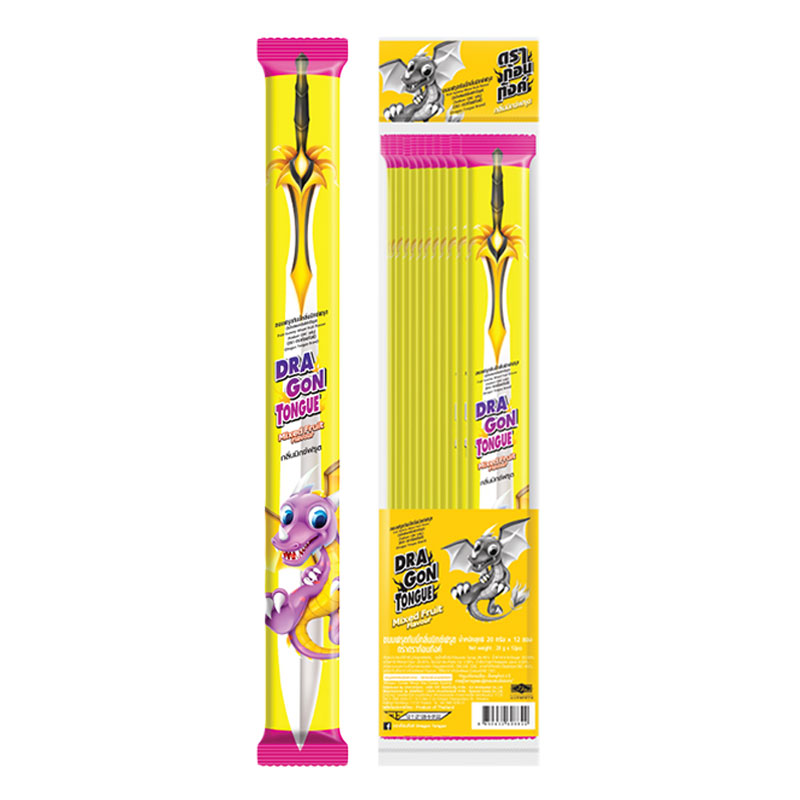 - ชื่อสินค้า: ดราก้อนทังค์ ฟรุตกัมมี่ ขนมลิ้นมังกร มิกซ์ฟรุต 20 ก. x 12