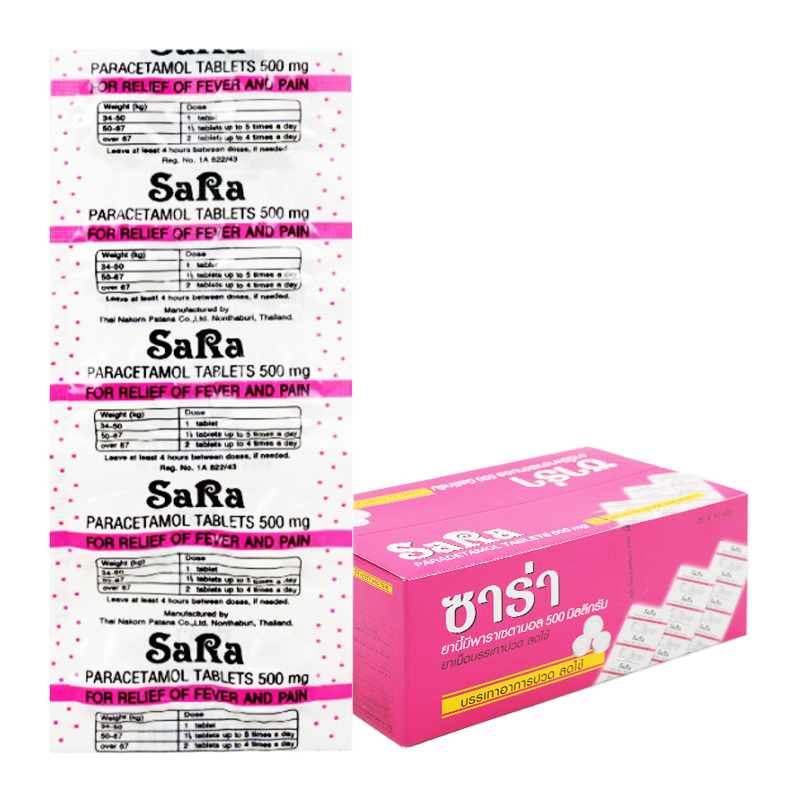 - ชื่อสินค้า: ซาร่า พาราเซตามอล เม็ดกลม 10 เม็ด x 20 - แบรนด์: ซาร่า - ปริมาณบรรจุ: 20 หน่วย