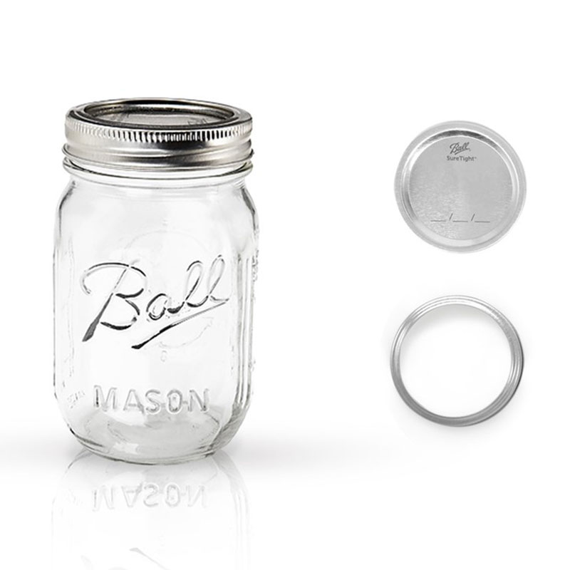 61000 Ball Mason Jar Regular Mouth Pint Jar 16 oz ขวดโหลแก้วบอลล์ ปากแคบ พร้อมฝา 16 ออนซ์ ● ขวดโหลแก้วบอลล์ ปากแคบ